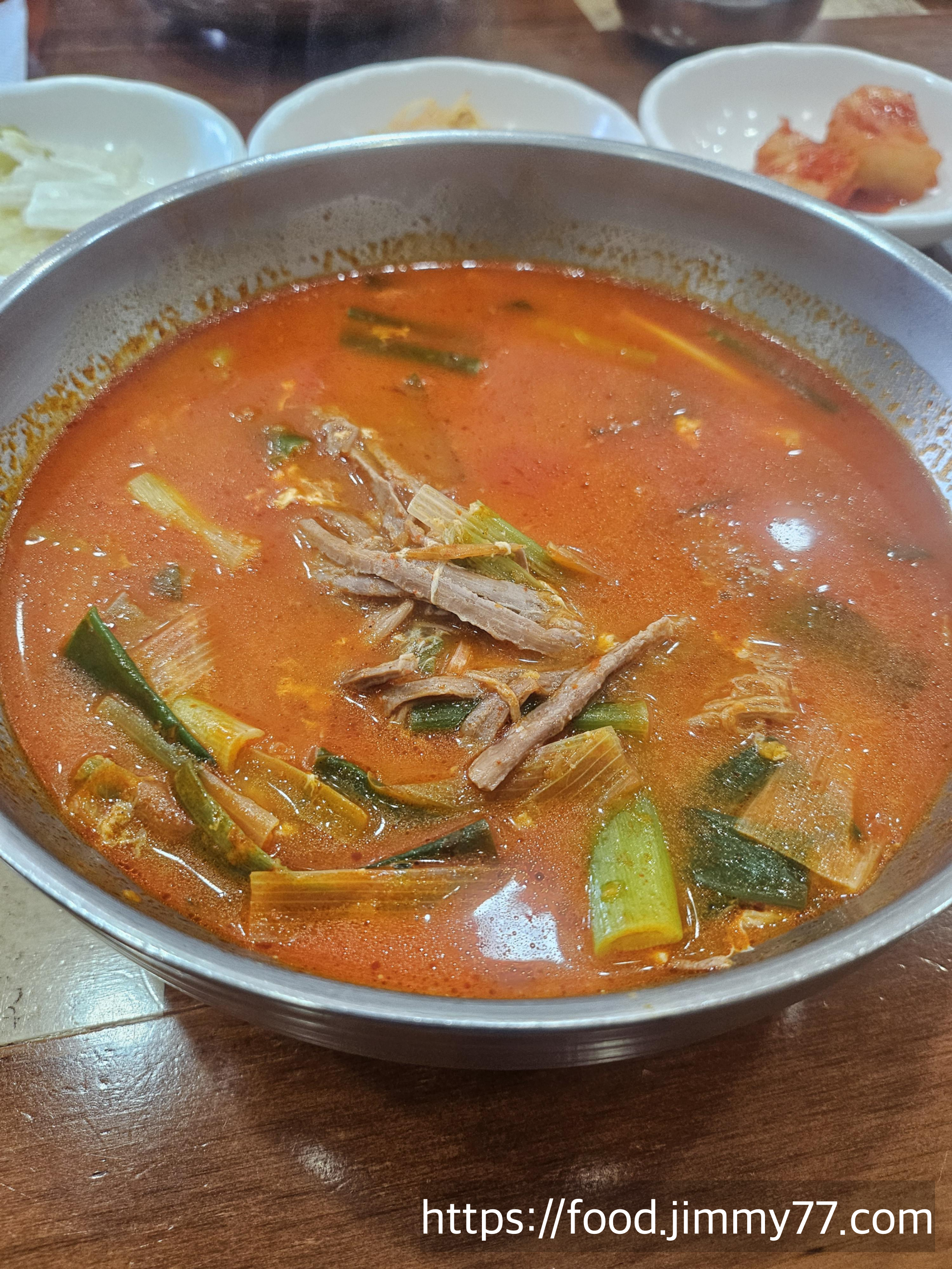 육개장외 여러 가지 메뉴가 있었는데요 저희는 기본인 전통육개장 시켜봤어요 아침이라 간단히 먹고 다음일정을 소화해야 해서... 보쌈도 맛있어 보였는데요 다음에 기회가 된다면 한번 먹어봐야겠어요 가격은 일반 해장국가격과 비슷했고요 특별한 것 없이 굉장히 무난한 식당이었어요