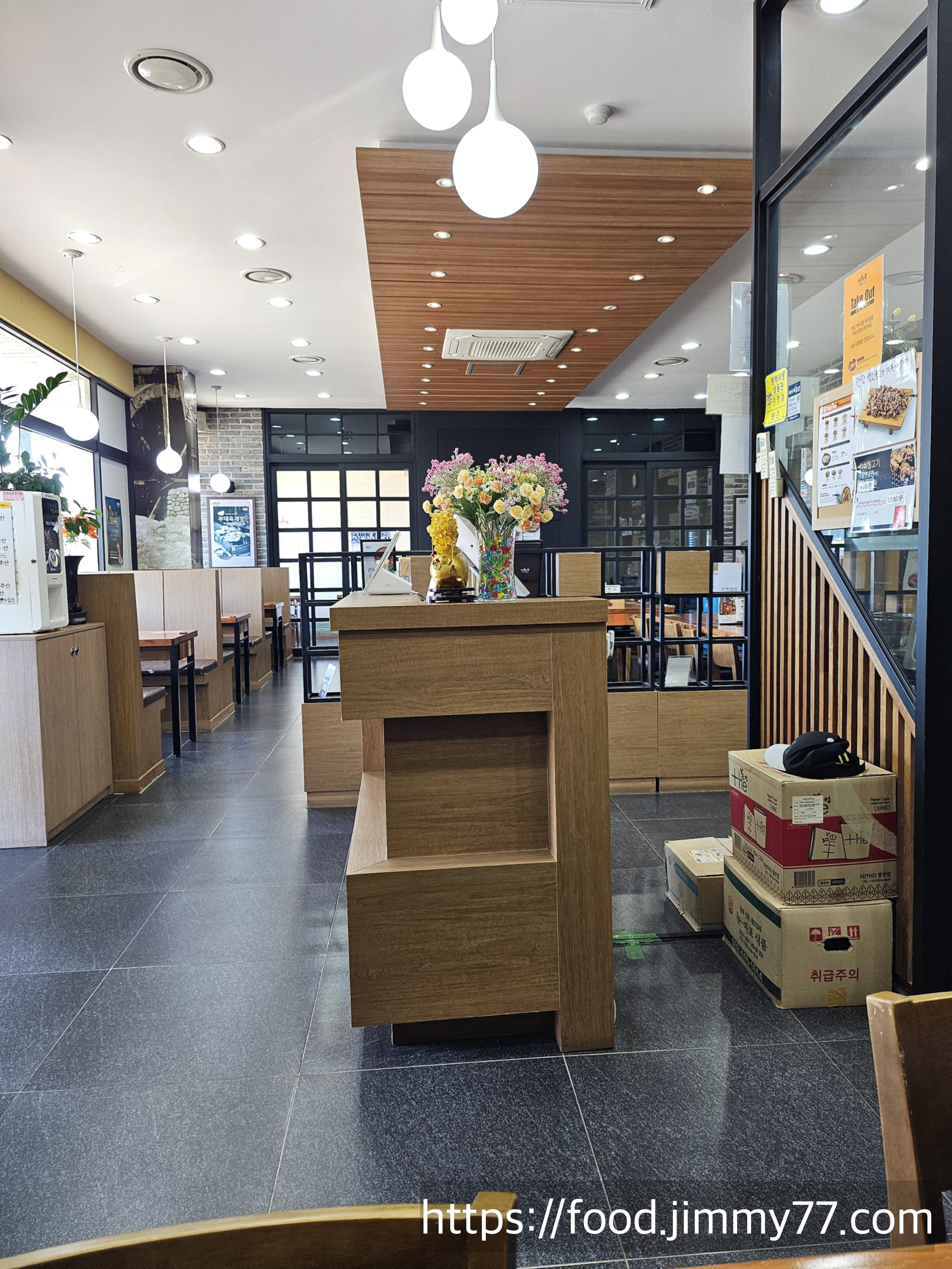 테이블도 꽤 많고 깔끔하게 정리되어 있네요 식당은 위생과 청결이 제일 중요한 거 같아요 저희는 오전 10시 조금 안 돼서 방문했는데요 아직은 식사시간이 아니라 손님은 없었어요