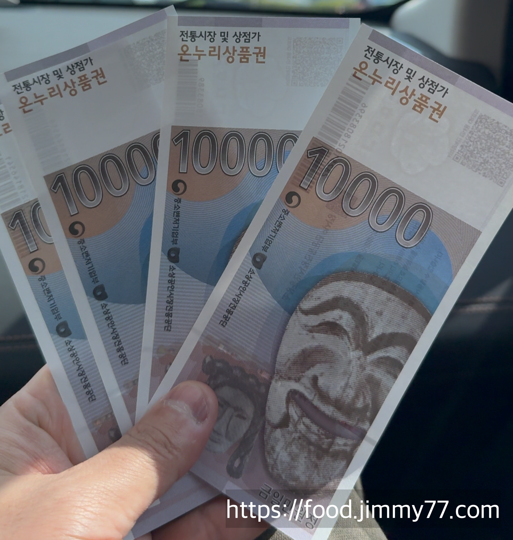 저희가 방문한 날 구매금액 6만 원에 온누리상품권 2만 원 환급행사가 있어서 완전 이득 봤어요 ^^ 알고 방문한 건 아니었고요 모르고 갔는데 사장님이 알려주셔서 득템 했네요 구매은 30여만 원 정도 구매했는데 1인 한번 신청가능해서 4만 원 받았어요 이럴 줄 알았으면 동료직원 한두 명 더 데려갈걸 그랬네요 ^^ 아무튼 감사히 잘 받았네요
