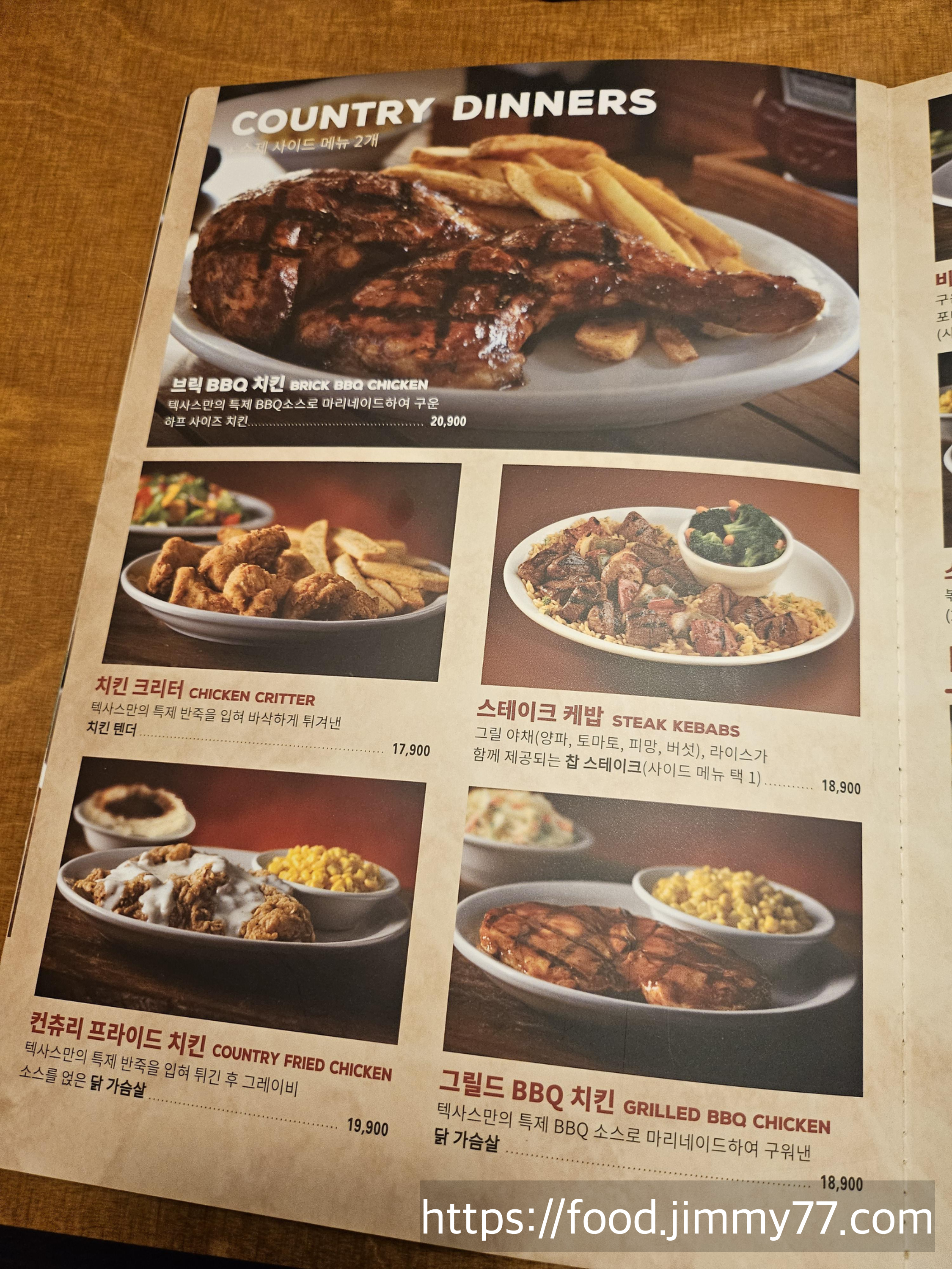 치킨류 메뉴도 다양하게 준비되어 있어요 양도 항상 푸짐하게 나와요 텍사스 로드하우스는 양이 적어 부족한 적은 한 번도 없었던 거 같아요
