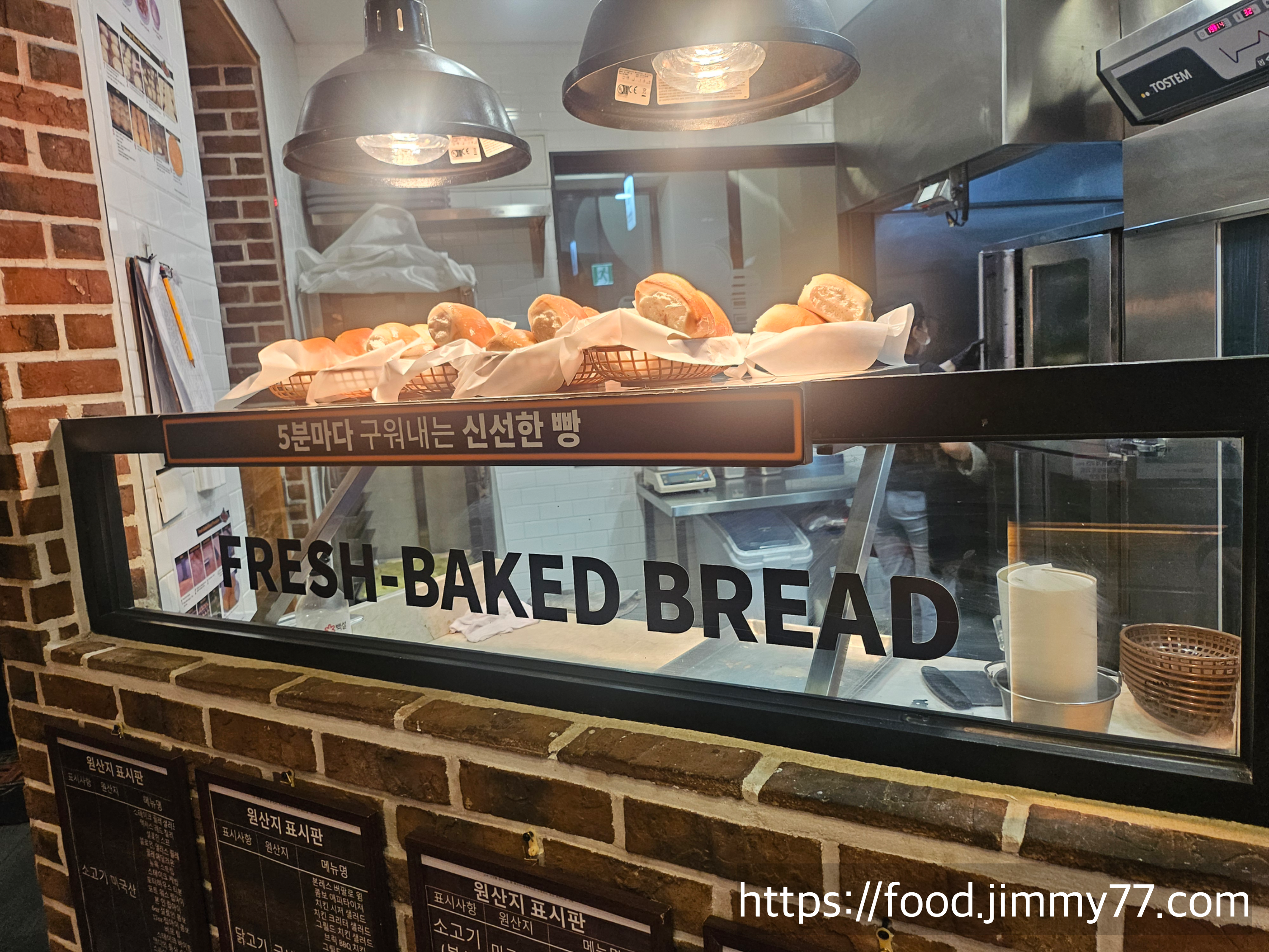 빵은 5분마다 구워내니 항상 따뜻한 빵을 드실 수 있으세요