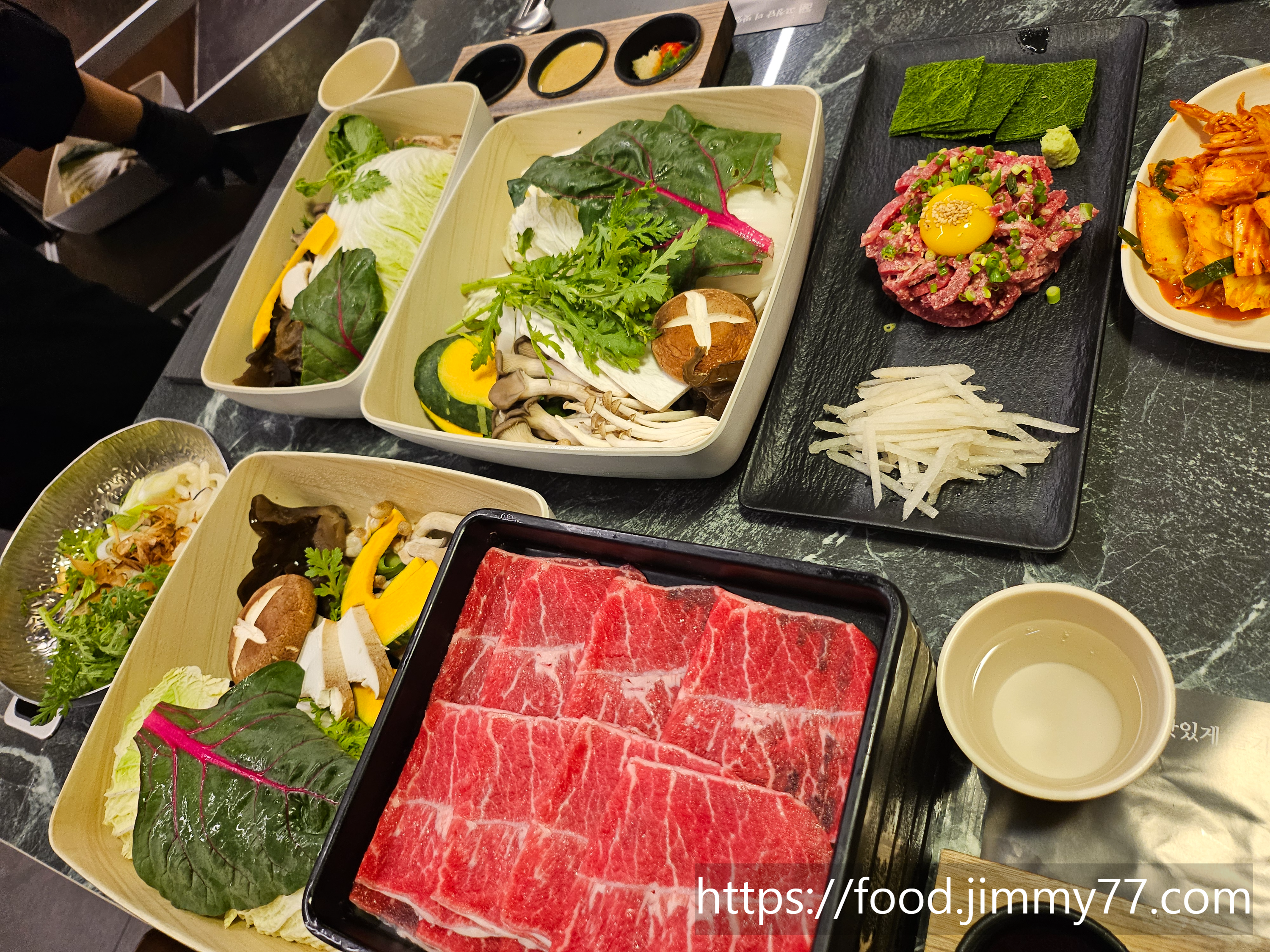 저희는 프리미엄 샤브샤브와 육회 그리고