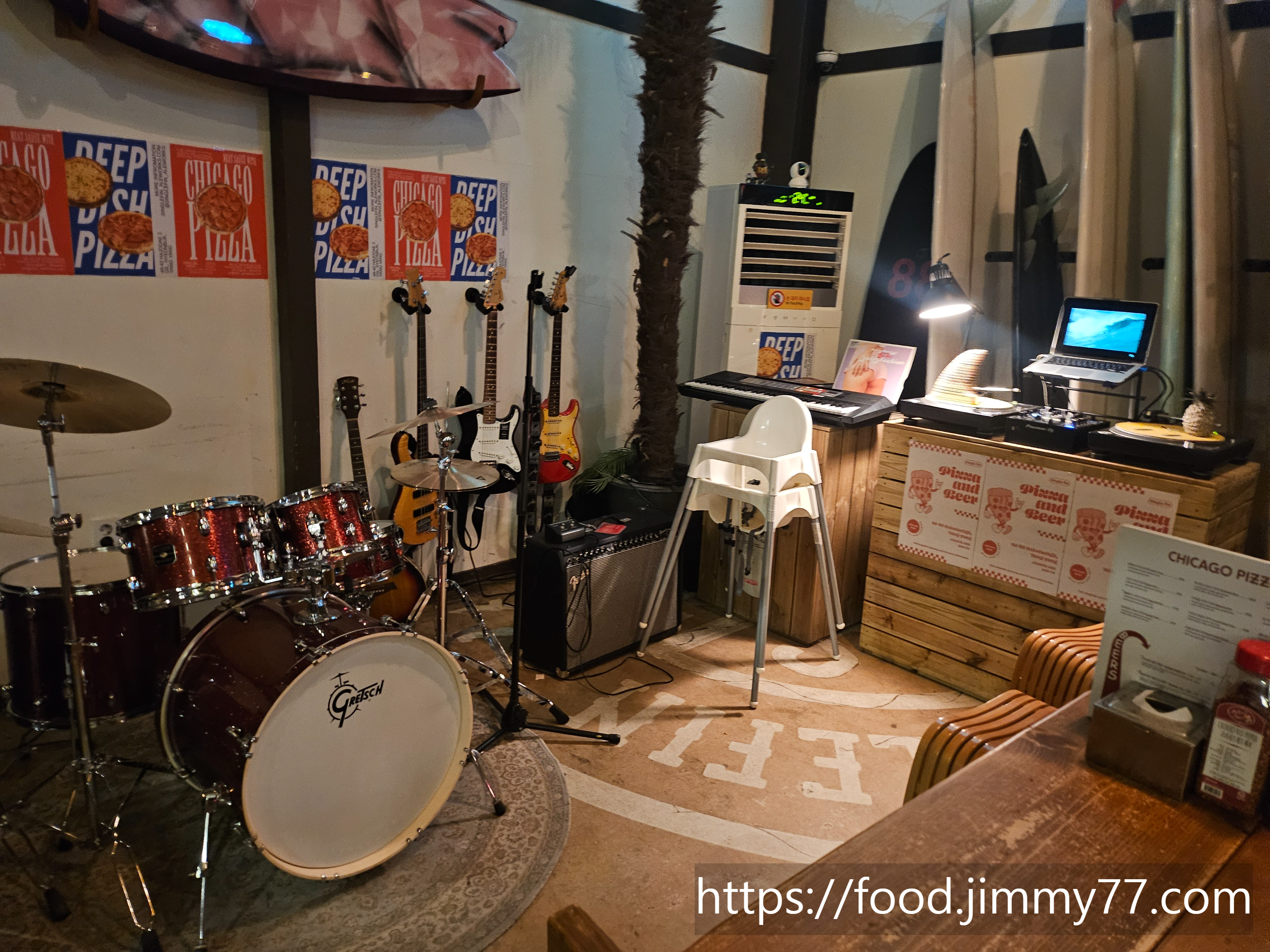 클래식 바이크와 올드카를 테마로 미국 정동의 시카고 피자를