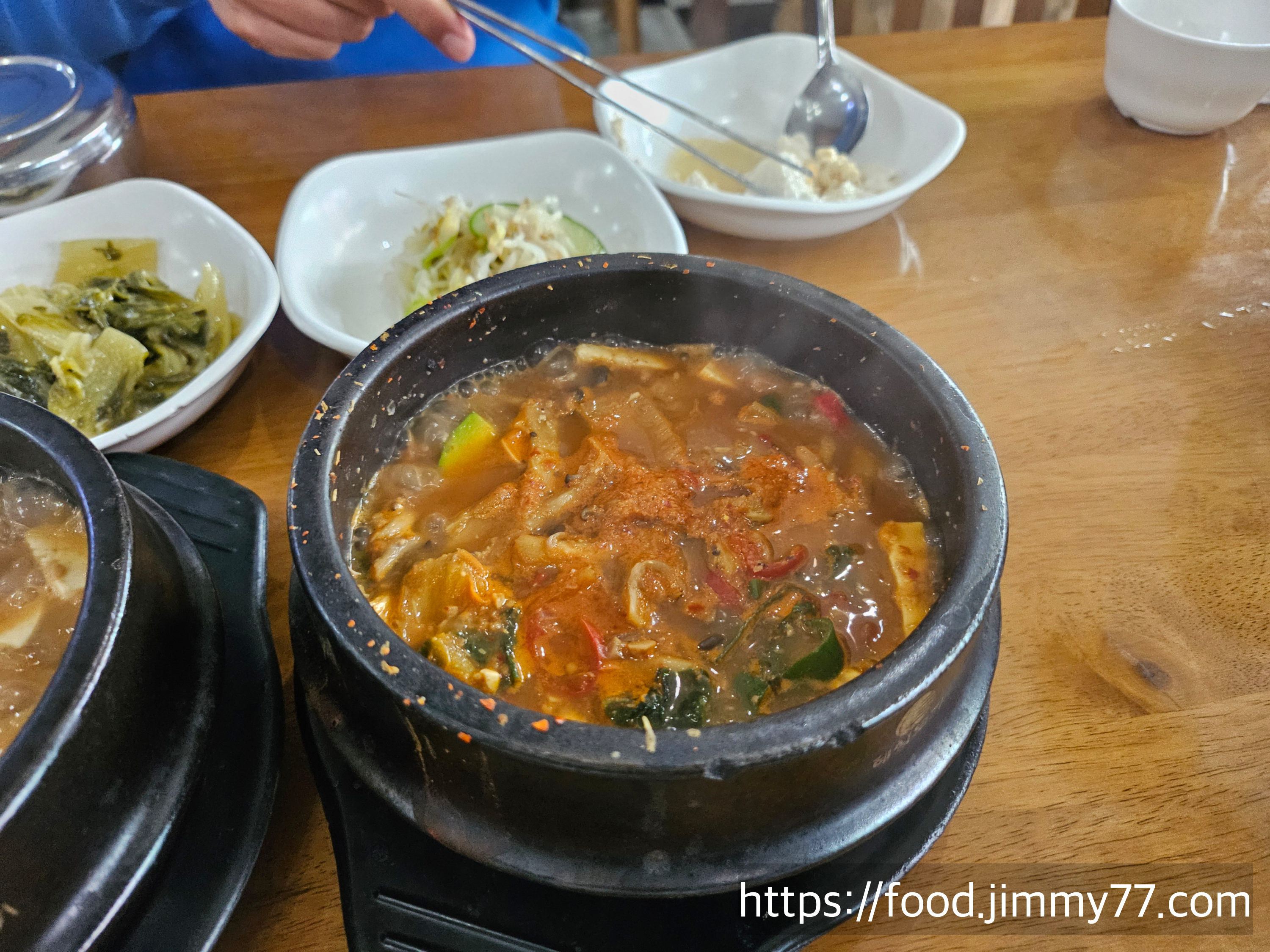 메인요리는 두부를 이용한 메뉴가 주 메뉴인데요 청국장과 된장찌개 같은 기본 한식도 맛있어요 오늘은 기본 찌개류와 두부김치를 시켜봤는데요