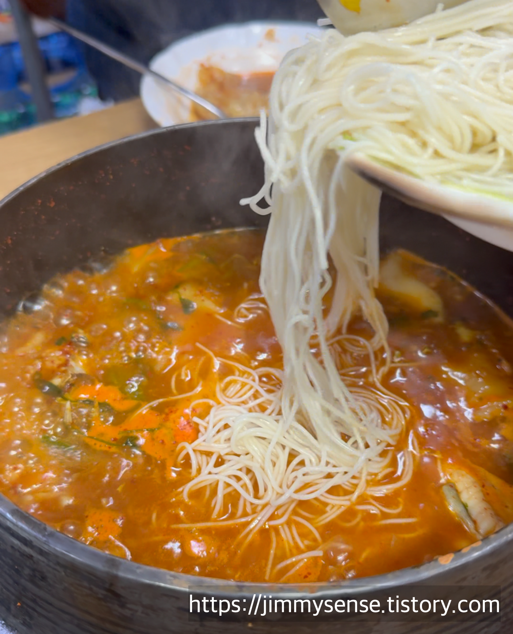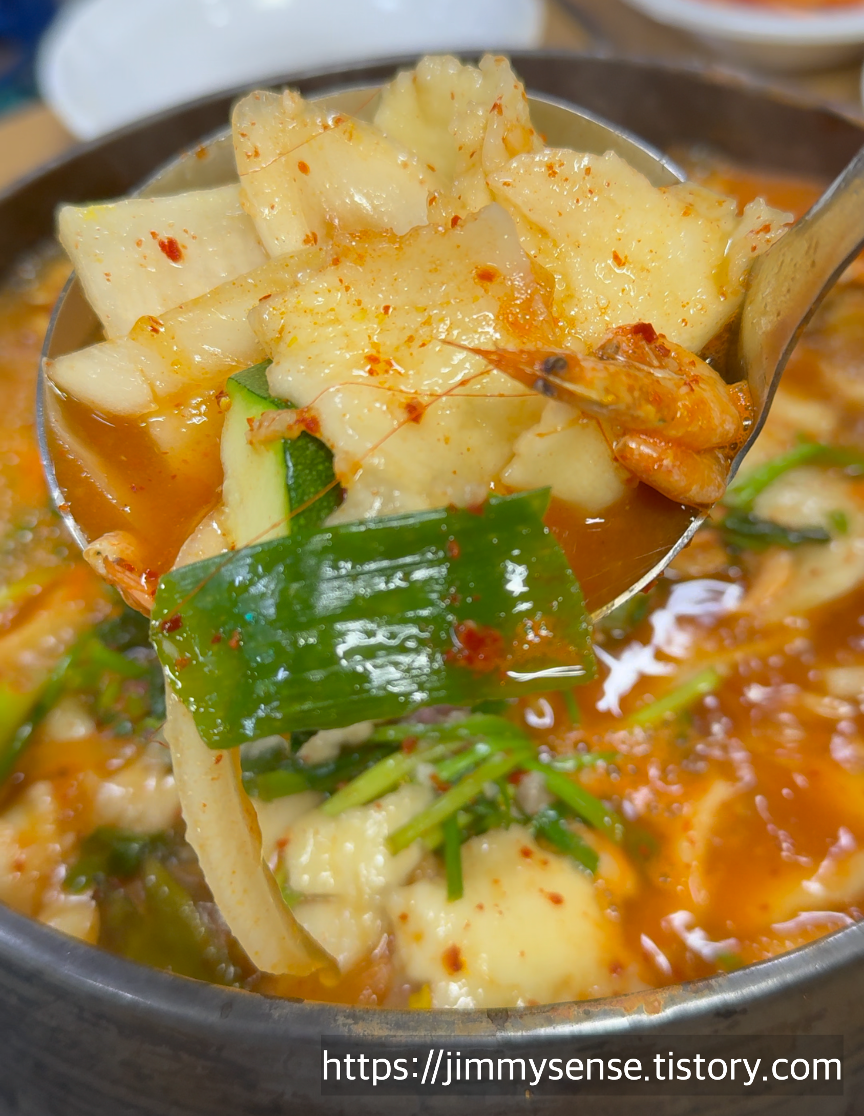 주문하시고 잠시기다리시면 금방 가져 나오시는데요 직접 반죽한 손 수제비도 듬뿍 들어가 있어 먹음직스럽죠?