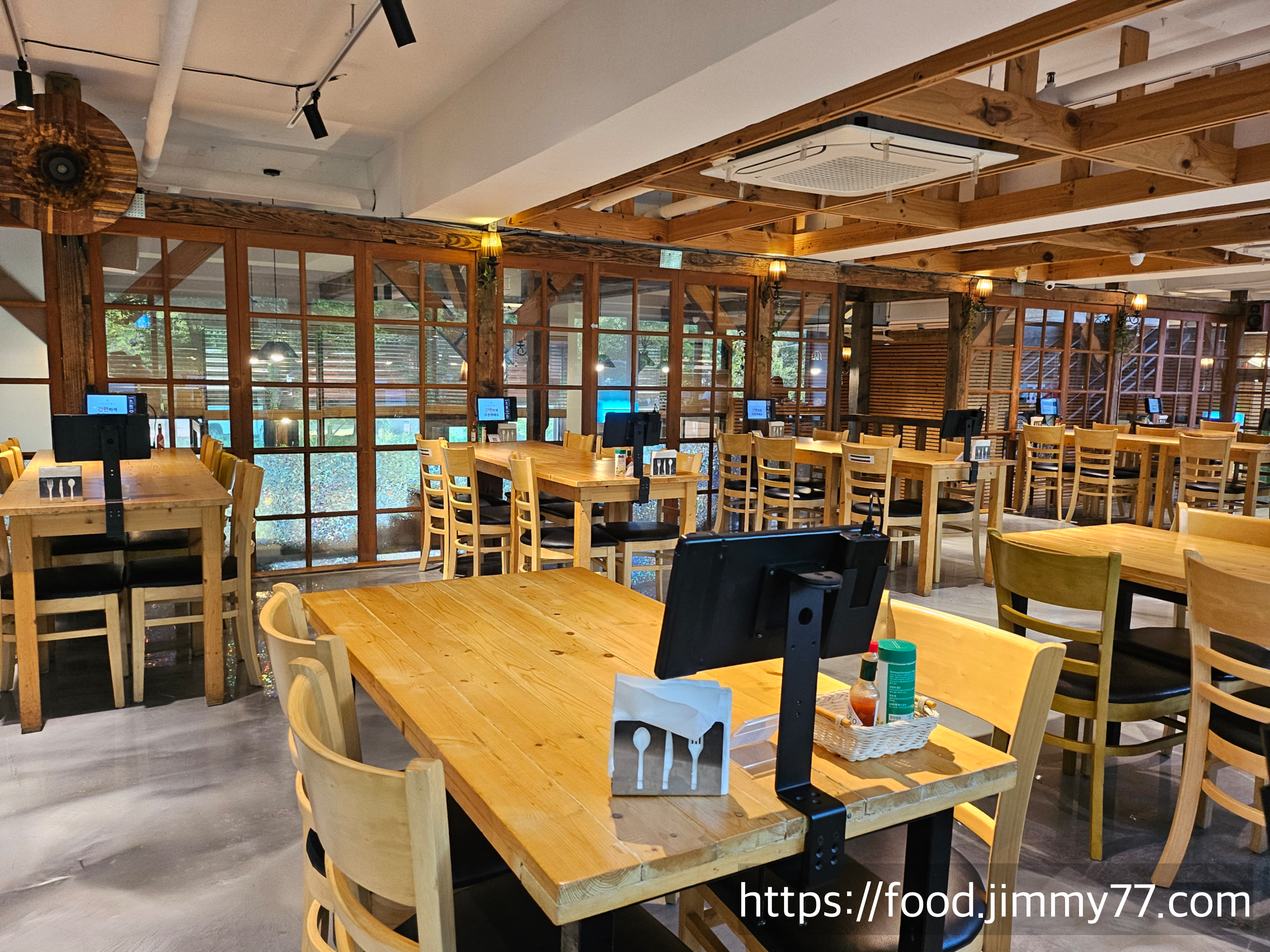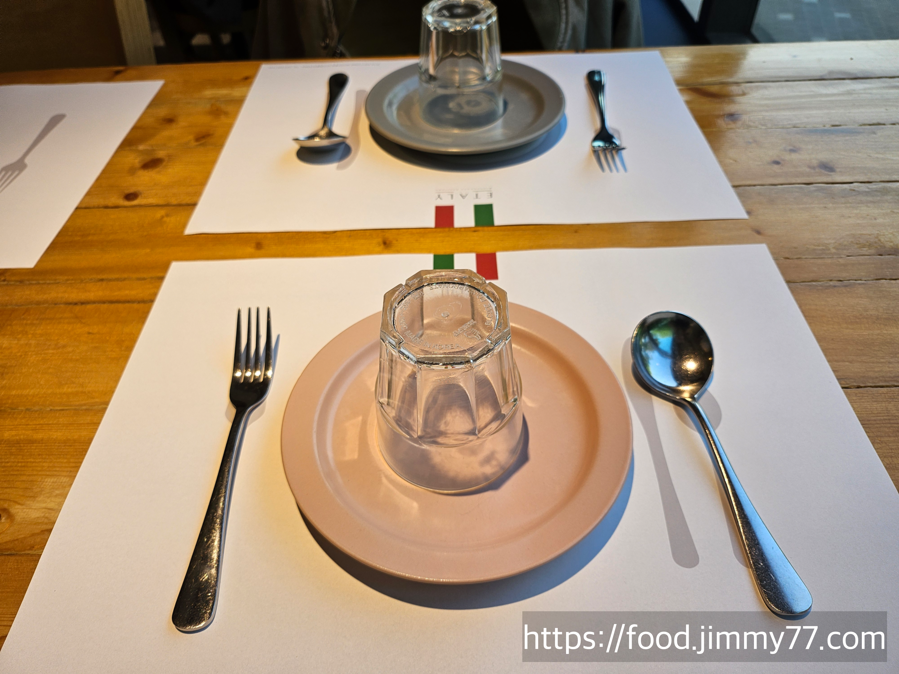 테이블마다 컵과 접시가 예쁘게 세팅되어 있고요 테이블 안내받아 패드로 주문하시면 준비해 주세요 요즘 모든 식당이 자동화를 선호하는 추세인 거 같네요 잇탈리 헤이리점도 예외는 아닌 거 같아요