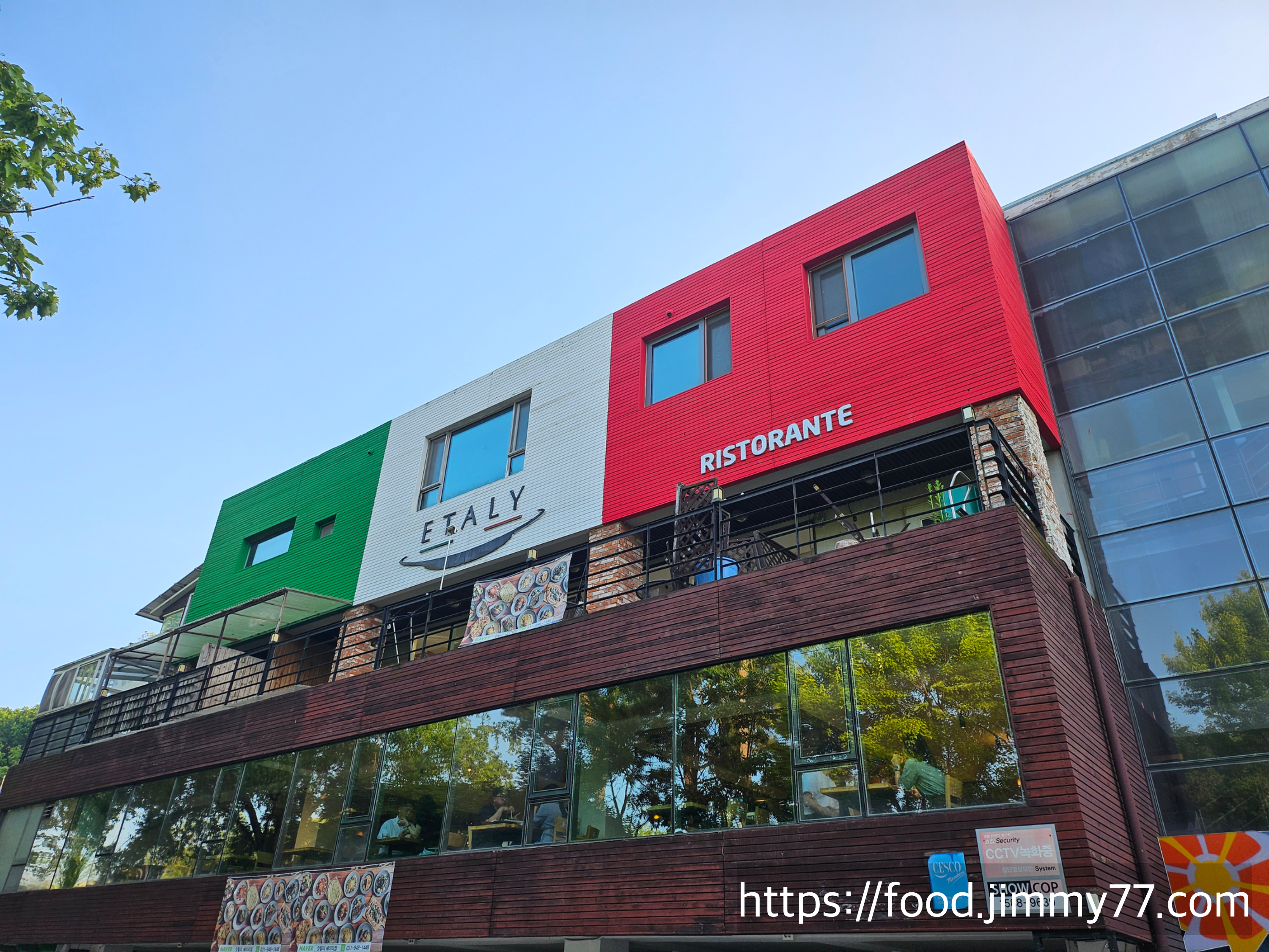 헤이리예술마을 안으로 들어오시면 큰 건물 2층에 이탈리안식당임을 알 수 있을 정도로 화려한 색상을 띠고 있는데요 건물 입구에서 2층으로 올라오시면 테이블들이 많이 준비되어 있어요