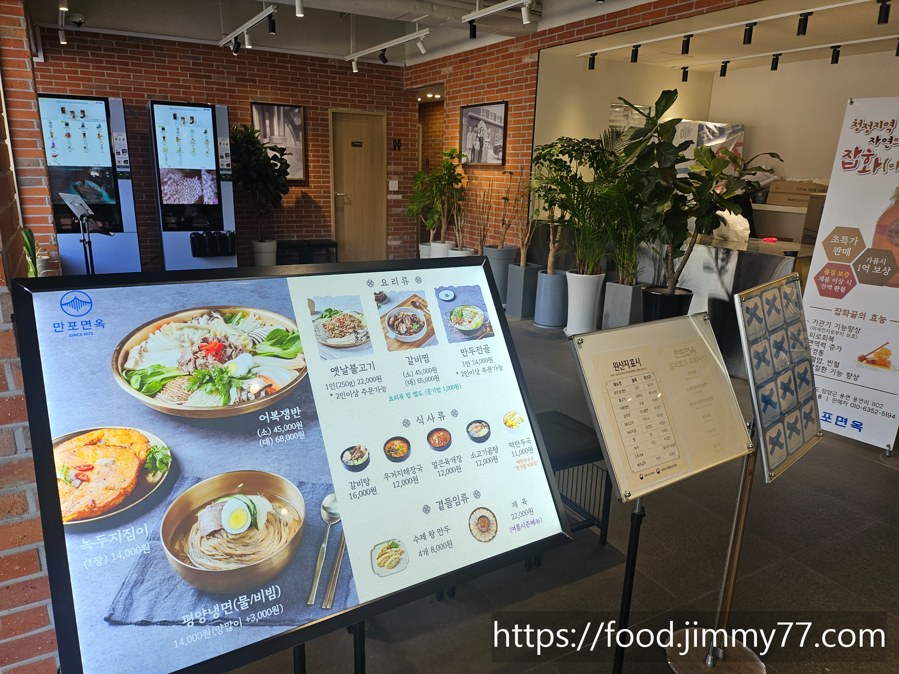 입구 쪽에는 추천 메뉴와 식사 후 차 한잔 하실 수 있는 휴식공간이 있어요