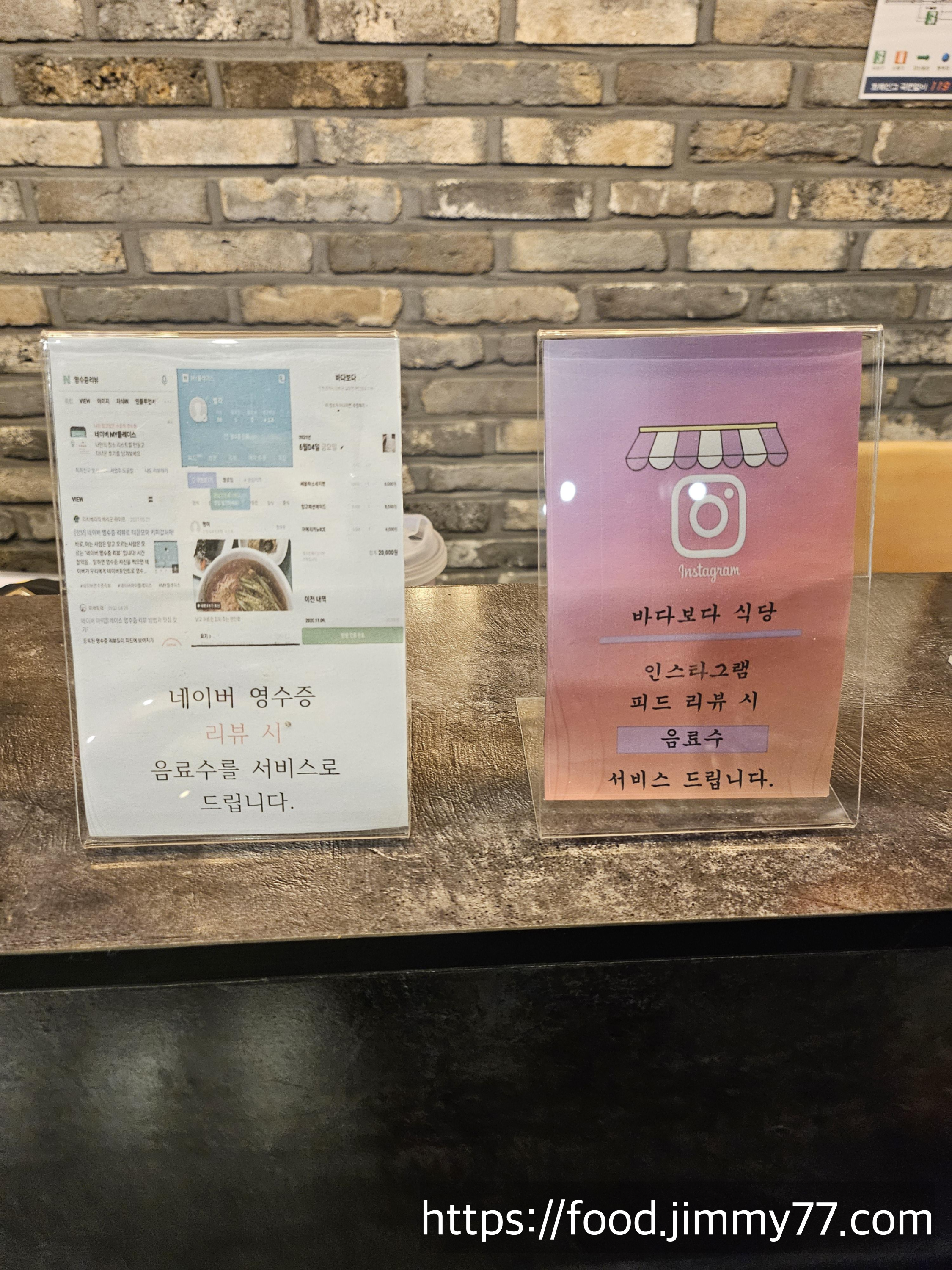 식사 마치고 나오는데 눈에 띄는 리뷰 이벤트 광고가 있네요 저희는 못 보고 들어가서 못 받았어요, 여러분은 꼭! 챙겨서 공짜 음료수 드세요 ~ 오늘도 이렇게 한상 푸짐히 차려 잘~먹고 갑니다.