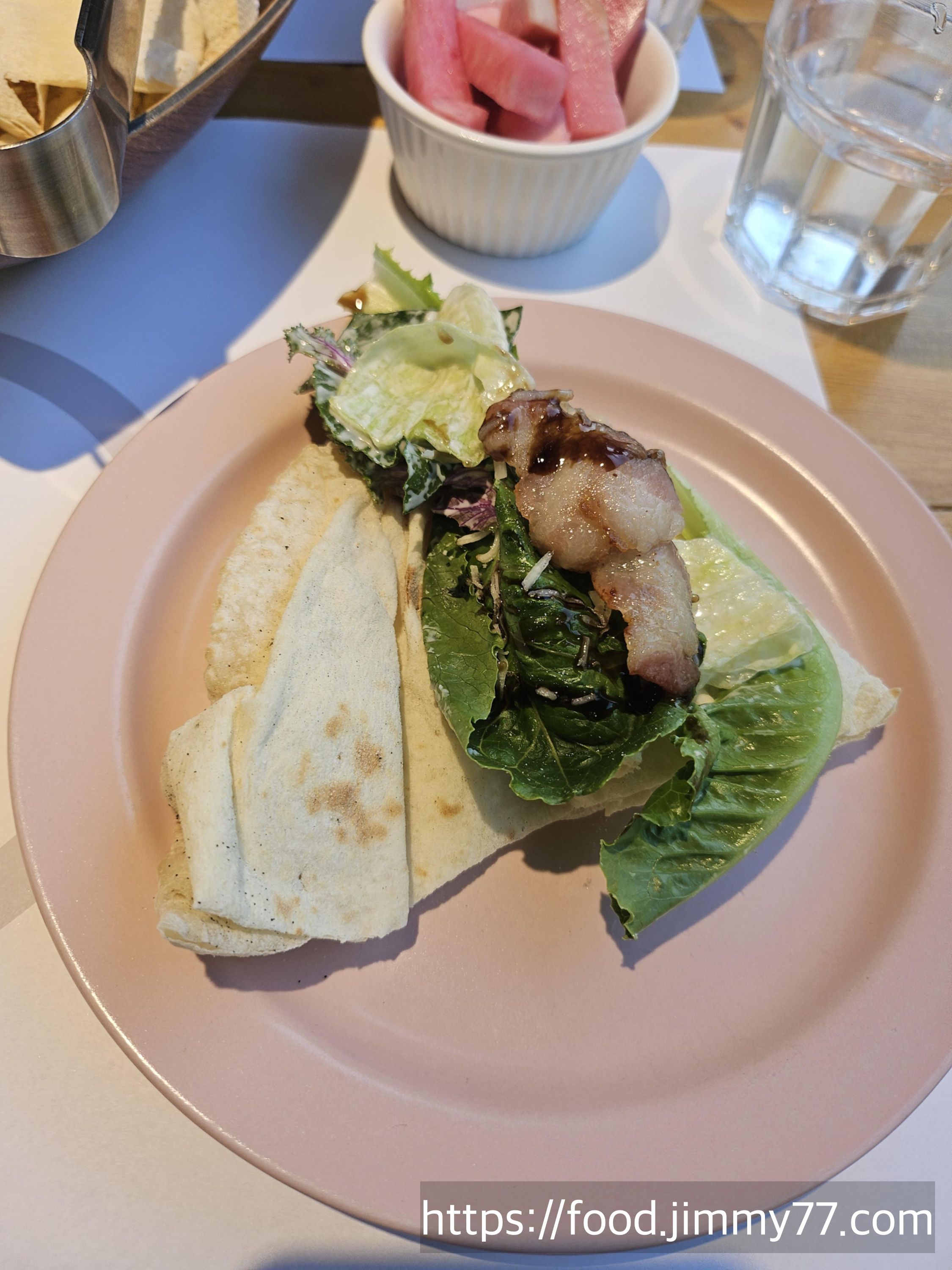샐러드와 함께 싸 먹을 수 있도록 피자도우도 화덕에서 바로 구워 가져다주시는데요 메인요리 나오기 전에 한점 싸 먹어 봤어요 가볍게 샐러드와 함께 빈속을 달래 주고 계시면 메인요리도 금방 가져다주세요